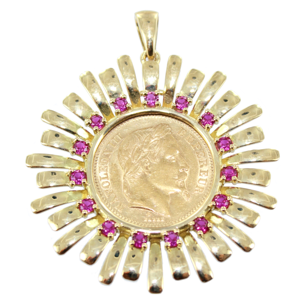 Monture radiation pour une pièce de 20 francs or (Pièce Napoléon III 20 francs or sur la photo).
